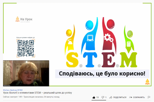 Очікувані результати: Учасники вебінару ознайомляться з прикладами використання елементів STEM на уроках біології, поповнять свій арсенал знань «родзинками» STEM-технологій, а також отримають практичні поради щодо використання елементів STEM-освіти на уроках біології.